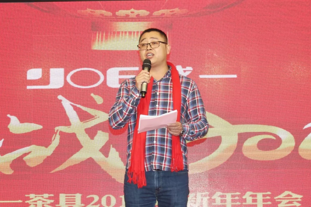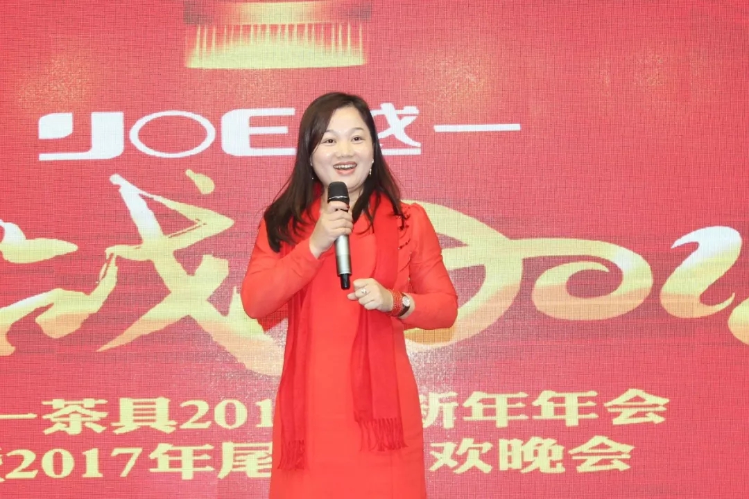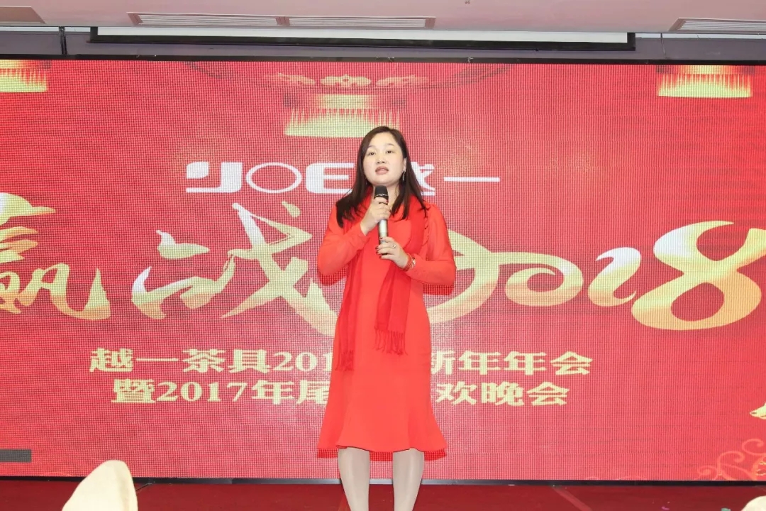 接下来业务代表赵军上台讲述公司新的一年的愿景及企业文化, 越一茶具是一家创新型企业,时刻创造人民更便捷、智能,科技的理想烧水电器。