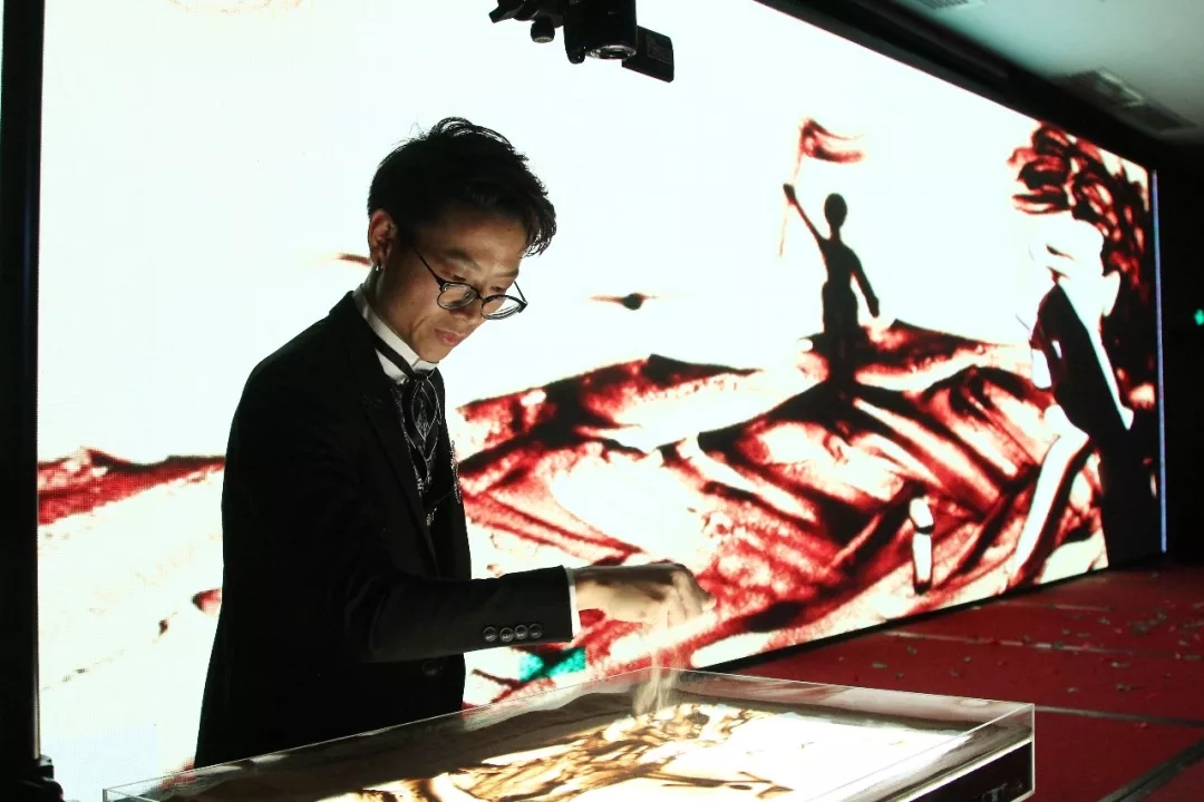 并邀请了沙画家 通过沙画生动的描述了:越一浓厚的家文化;风雨与共,凝心聚力,共创美好未来。