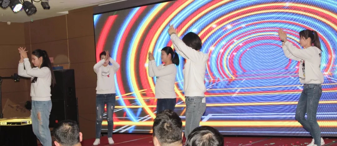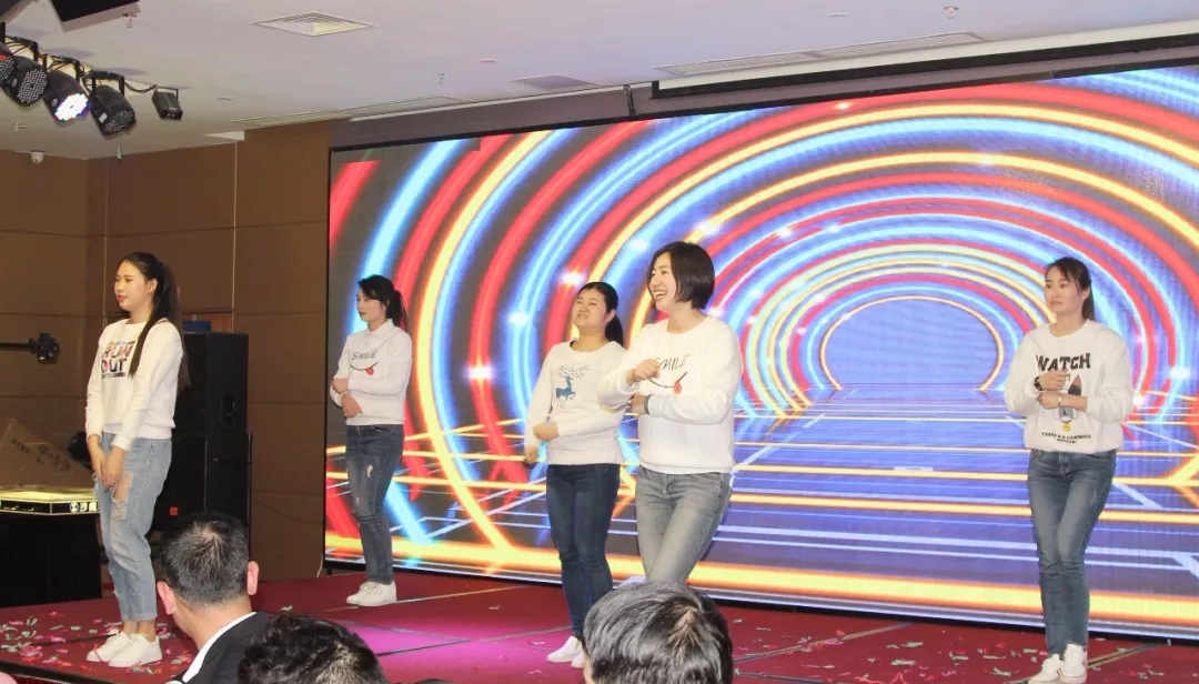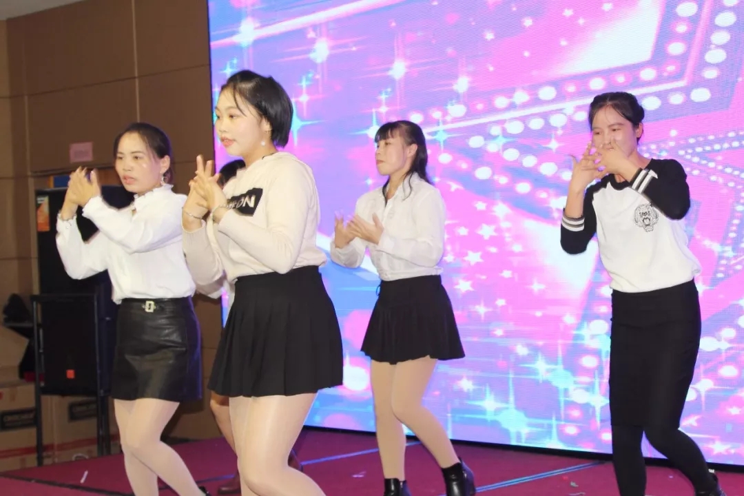 客服部青春活力的姑娘们,向嘉宾们表演了抖音里流行舞蹈 C哩C哩。