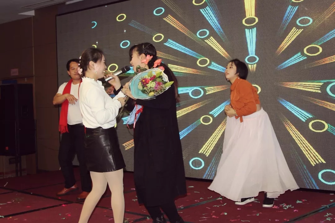 由公司人事部及生产部联合表演的《快乐崇拜》,带动台下的嘉宾重温经典。