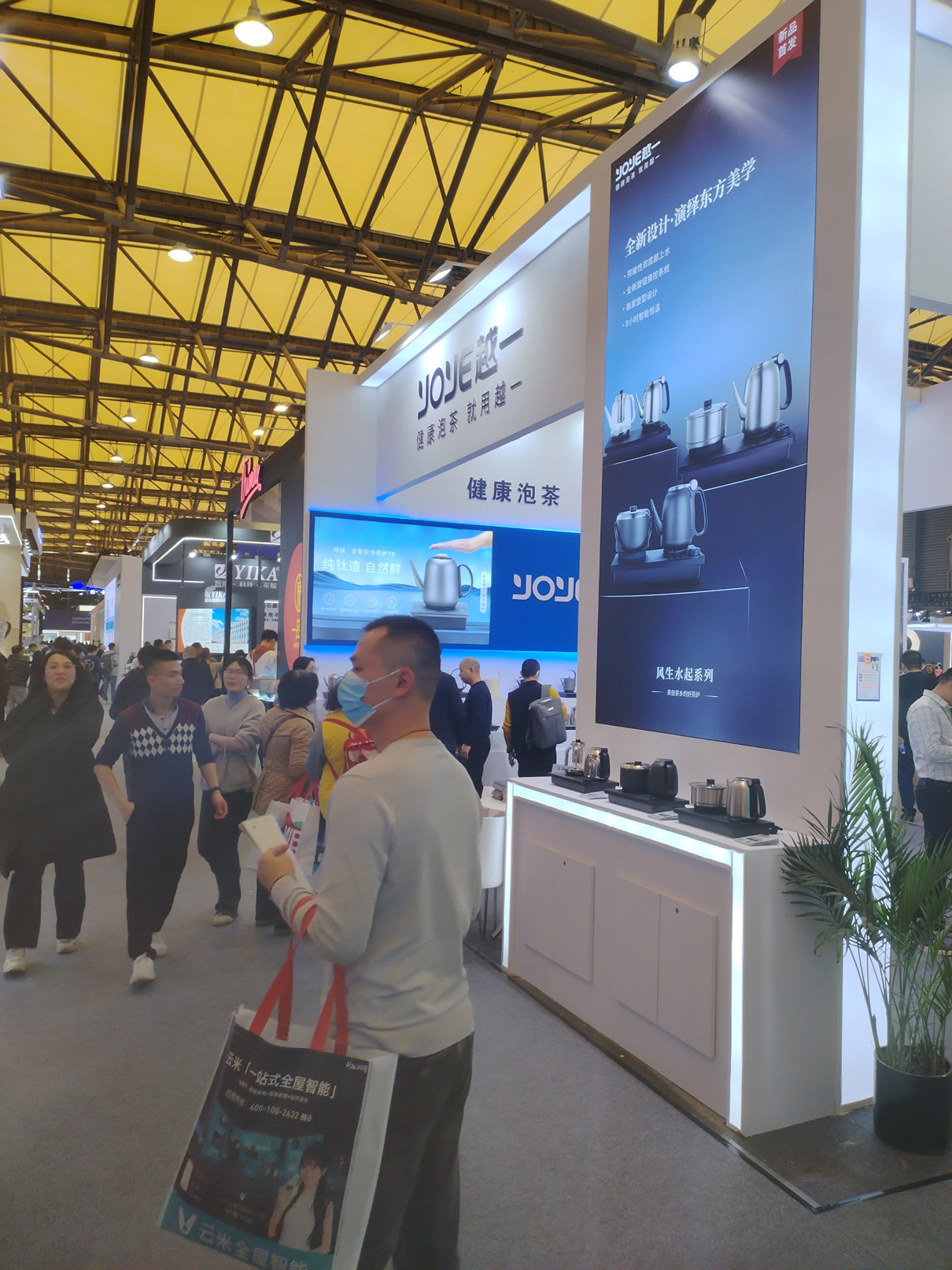 展会期间,越一展位人头攒动,咨询、体验热情高涨,新品区、展示区聚集了众多观展者。无论是对越一观望已久的消费者,还是期望与越一达成合作的观展商,都充分沉浸在这份智趣双全的烧水体验之中,场面热闹非凡!
